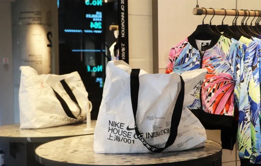 全球首家Nike House of Innovation為前來體驗(yàn)的消費(fèi)者們提供同樣具備創(chuàng)新精神的杜邦? Tyvek® 品牌材料設(shè)計(jì)制作的酷感十足的環(huán)保購物拎袋。