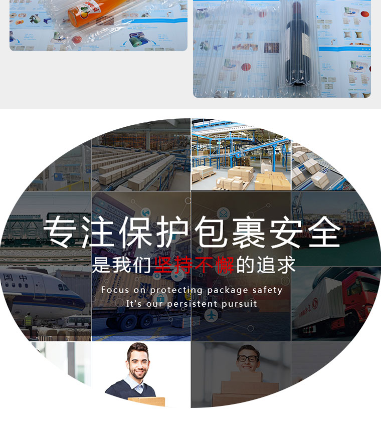 沖氣袋耐久性(充氣0.05mpa,加壓0.5kg,六月內(nèi)漏氣在8%以內(nèi)),同時每一個氣柱包裝袋至少可以可以承受至少100KG重壓而不會破裂。而當(dāng)某一氣柱因被尖銳物弄破之后,并不會影響其他氣柱,照樣可以為產(chǎn)品繼續(xù)服務(wù)。