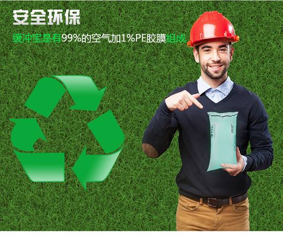 是由99%空氣和1%PE膠膜組成,極大節(jié)約了包裝材料倉儲空間;膠膜塑料材料還可重復(fù)利用,有效避免制造包裝垃圾。