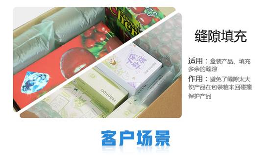 填充及裹包氣墊產(chǎn)品。通過SGS測試,符合ROHS標(biāo)準(zhǔn),是新型環(huán)保的包裝緩沖材料。