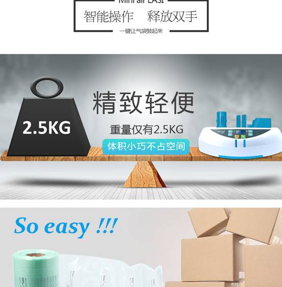 MINIAIR EASi是目前為止全球最輕便的緩沖氣墊機(jī),整機(jī)重量?jī)H2.5kgs,外觀精美小巧,迷你型氣墊機(jī)融入極簡(jiǎn)結(jié)構(gòu)設(shè)計(jì)理念,機(jī)器運(yùn)行高效穩(wěn)定,通過歐盟CE與北美UL安規(guī)認(rèn)證,符
