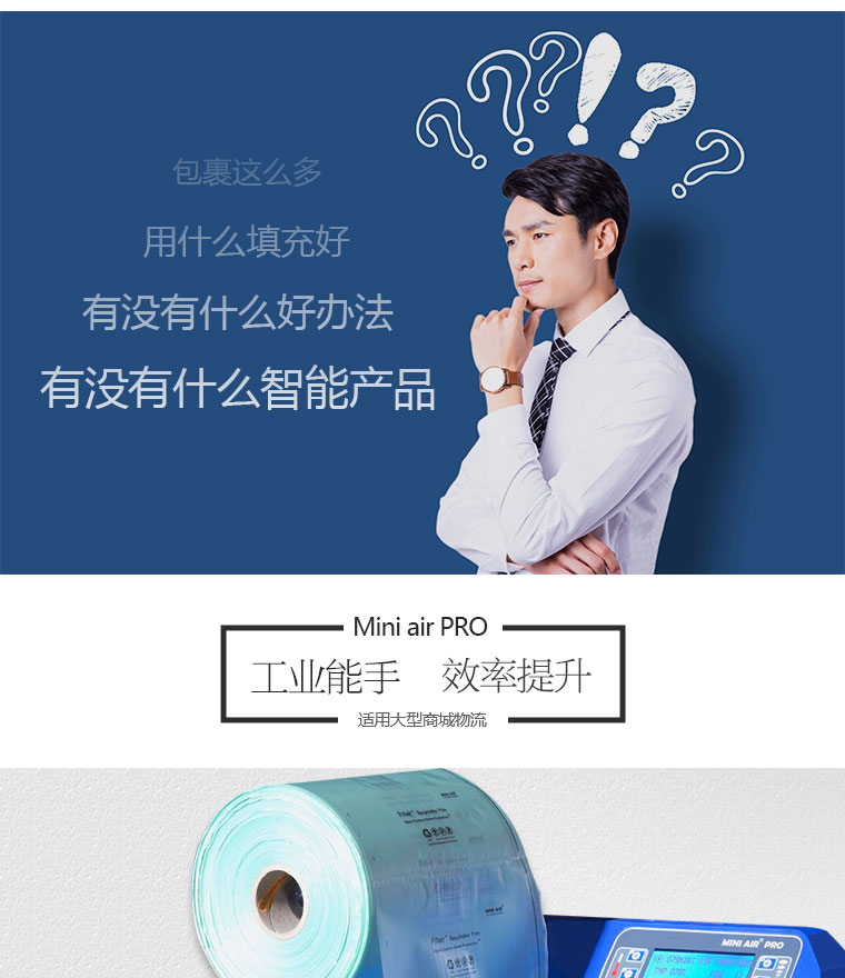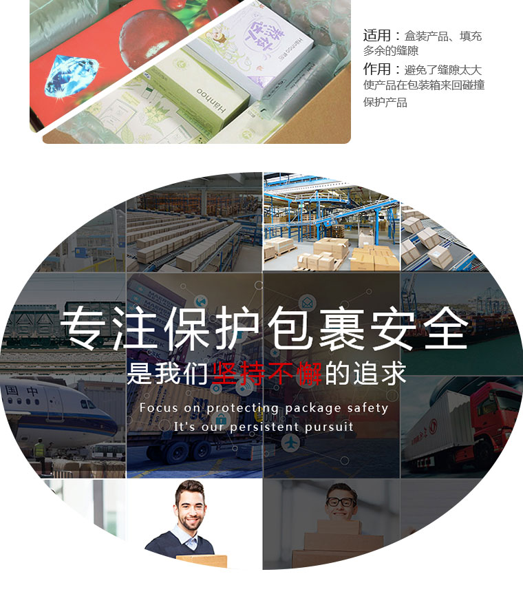 4卷卷膜吹出來的空氣袋體積≈滿滿1卡車的車廂空間;即時上線進行氣墊制作,滿足隨時包裝所需,節(jié)省倉儲空間和材料搬運的時間。