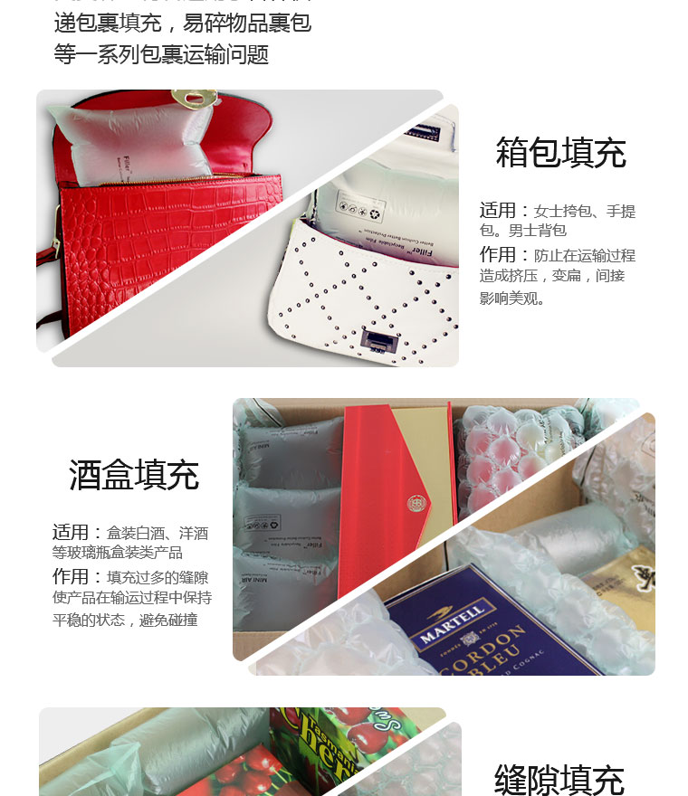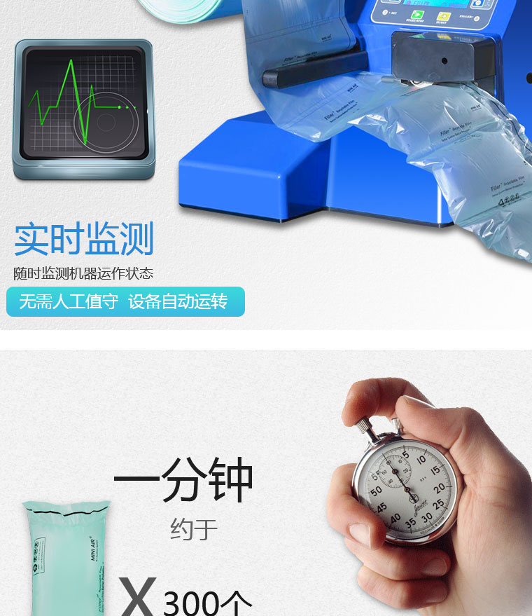 核心加熱技術(shù),使設(shè)備達到良好的薄膜密封效果,避免空氣泄漏;空氣袋即使儲放1個月,體積仍能維持80%以上。